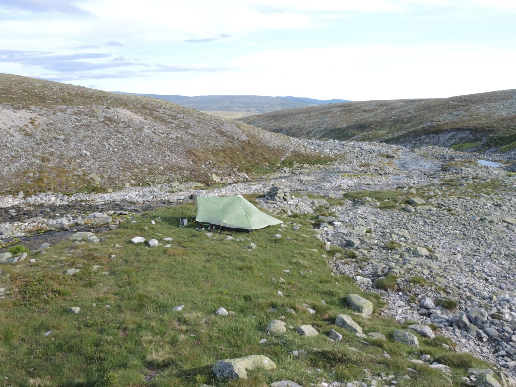 Op naar Rondane, een ander berggebied waar we goede herinneringen aan hebben. Ooit maakte we hier twee lange trektochten. We rijden omhoog naar het plateau, dan is dat vast gebeurd. Mysoseter is de plek, zo’n beetje aan de boomgrens die hier natuurlijk niet zo hoog ligt als in de Alpen. Drie dagen lopen we met de tent langs min of meer bekende punten, en we nemen zelfs een paar (mini)topjes mee.