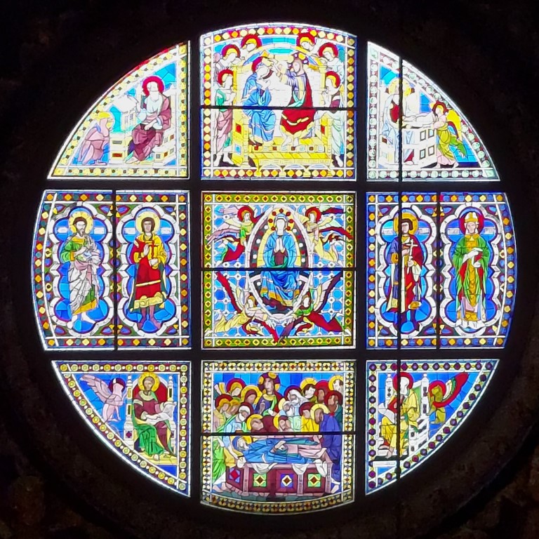 Ook bezoeken we de crypte. Zoals vrijwel elke crypte is het een mystieke ruimte die doet denken aan de voorchristelijke heiligdommen die vaak al aanwezig waren toen besloten werd om er een christelijke kerk overheen te bouwen. De rauwe werkelijkheid van het kerkgebouw doet zich hier voelen. En als je denkt dat je het diepste deel bereikt hebt, blijkt er nog een laag onder te zitten! Helaas mochten we daar niet in.